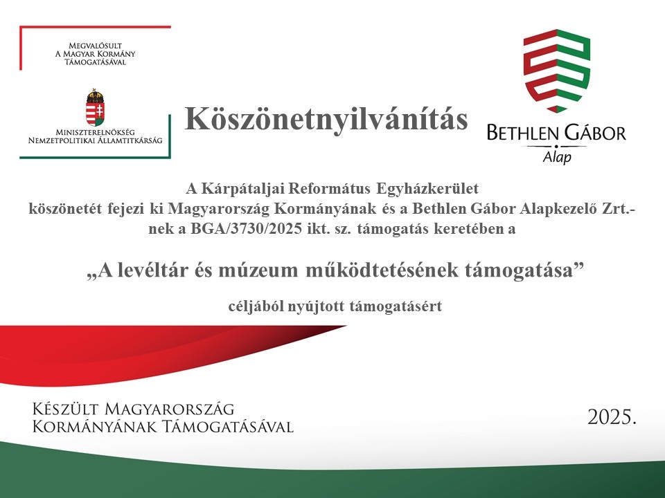 - A Kárpátaljai Református Egyház együttműködve a HEKS/EPER Románia-val pályázatot hirdet