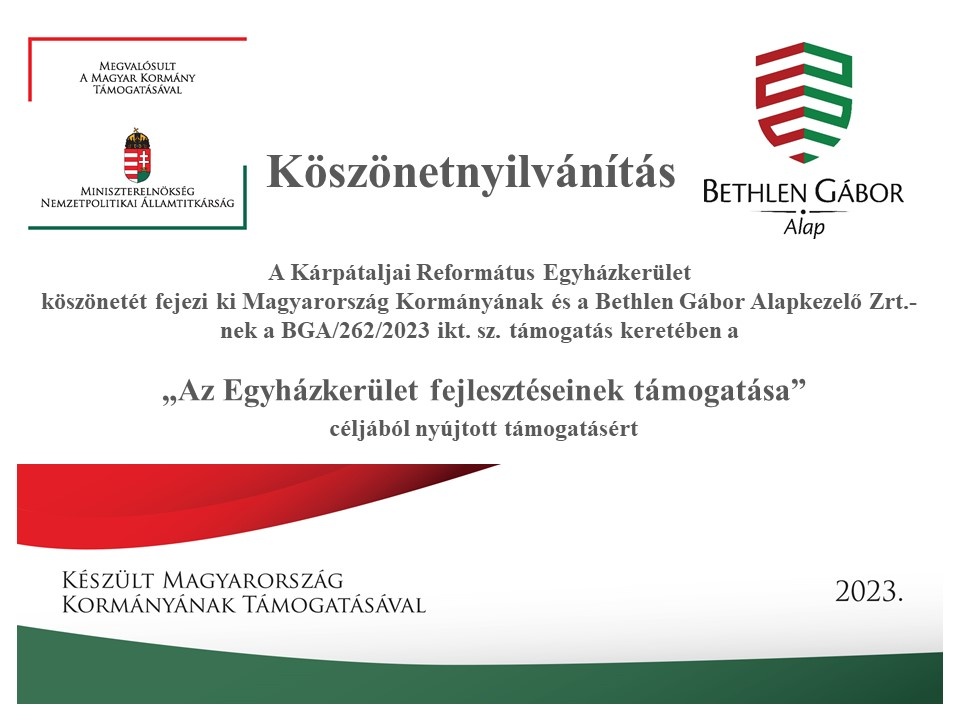 - A Kárpátaljai Református Egyház együttműködve a HEKS/EPER Románia-val pályázatot hirdet