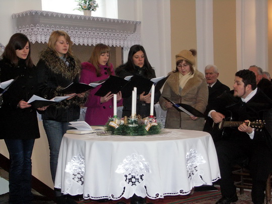 Szimkovics Tibor lelkipásztor gitárkíséretével. Mindig nagy öröm látni a gyülekezet ifiseit, s hogy ma is vannak olyan fiatalok, akik szívből tudnak énekelni az Úrnak, a gyülekezet színe előtt, bizonyságot téve hitükről. Ezt követően lángra lobbant a negyedik adventi gyertya is, jelezve a Karácsony közeledtét.